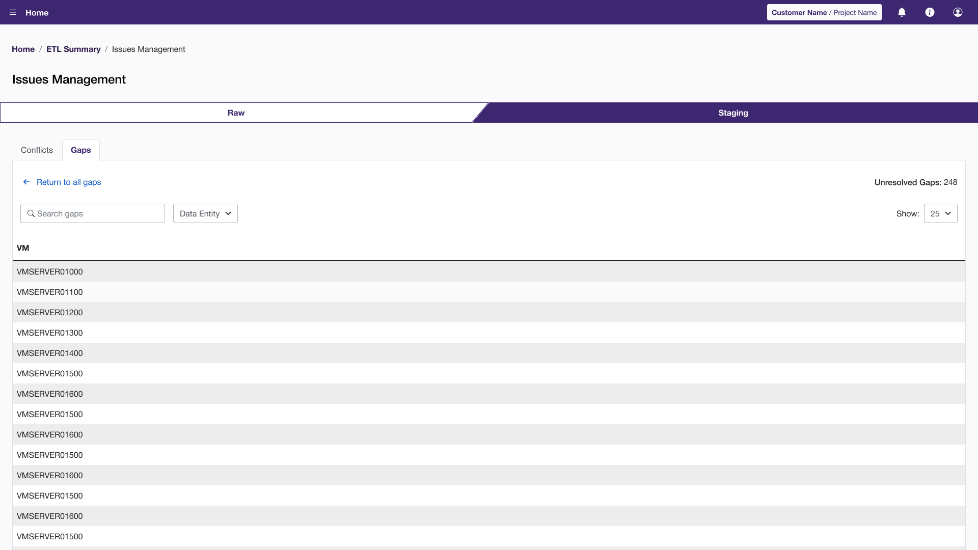 The client is a consultancy firm that provides end-to-end data migration services for enterprise customers (e.g. finance companies, charitable organizations, government). The goal of the application is to manage data sources and provide users with the analytical data for them to develop and monitor migration plans.